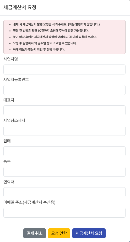 많은 분들이 결제 후 세금계산서 발행에 대해 문의하십니다.
